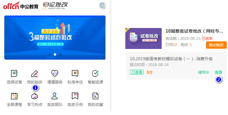 在电脑和手机端,查看的流程是一样的,点击【我的批改】-在批改试卷的后面,点击【查看】。