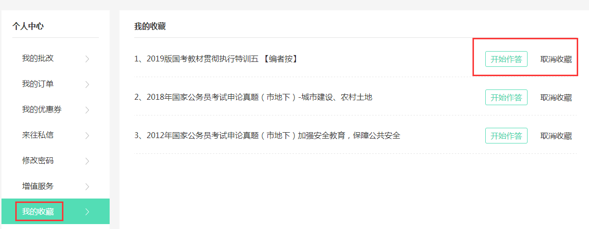 查看收藏的试卷,点击【个人中心】--【我的收藏】,这里可以直接去做题,或者取消收藏。