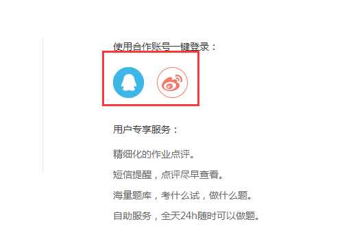 申论批改系统支持QQ和微博登陆,点击图标,如果第一次未绑定,则需要绑定一个系统账号。