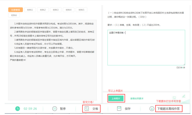 在电脑端答题页中,点击【下载题本离线作答】就可以得到答题纸和题本的电子版。